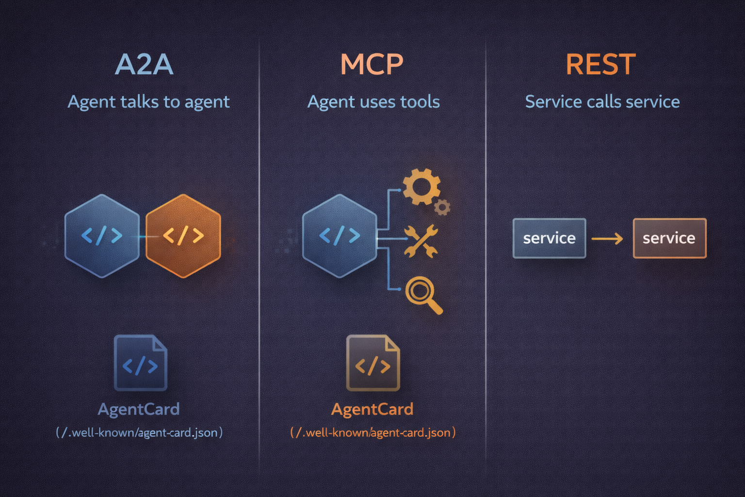 The decision rule I use: A2A when the other side is an agent and lives in a different trust domain. MCP when I need tools inside my agent. REST when the call is deterministic and the other side can be deterministic too. A message queue when the work can be asynchronous and backpressure matters more than immediacy.